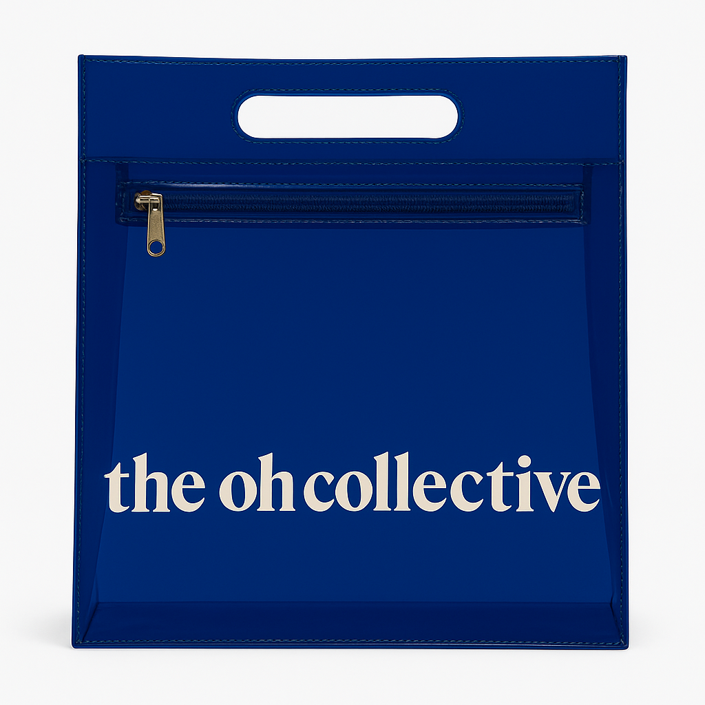 This sleek navy bag is perfect on the go. Made from durable, glossy material with a practical zipper and handle cut-out. Ideal for storing your favorite vibes or using as a standout goodie bag. Easy to clean and reusable.