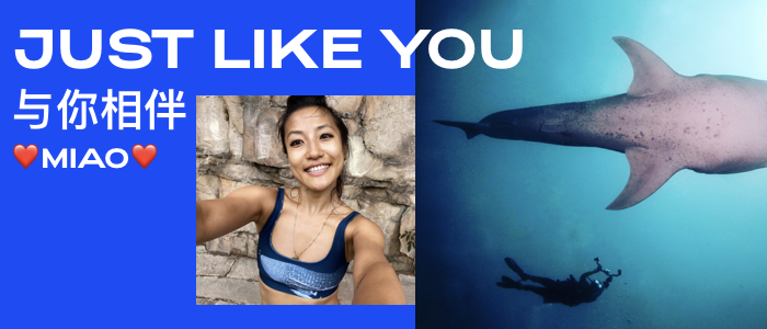 Miao:我叫做王淼英文名为Miao,北京出生,美国长大,白天全职是乐高创意总监,晚上全心做鲨鱼使者 (In Sharks We Trust创始人) 从三好学生到常青藤学霸到找份好工作,一直走的是很保守的“成功”路线,直到五年前随着上一份工作(耐克)到上海,受到各种文化冲击差点搬走,终于在挚爱的潜水/海洋中找到了使命与光,走上拯救世界的创业之路,也因为梦想找到了爱情,在之后找到了我的OH