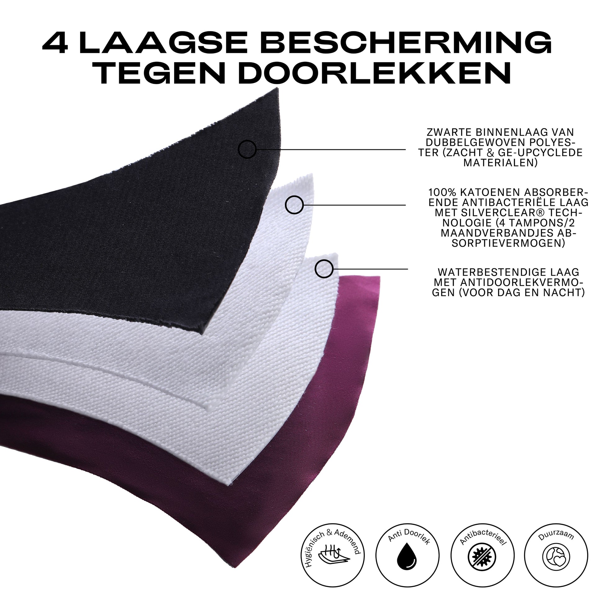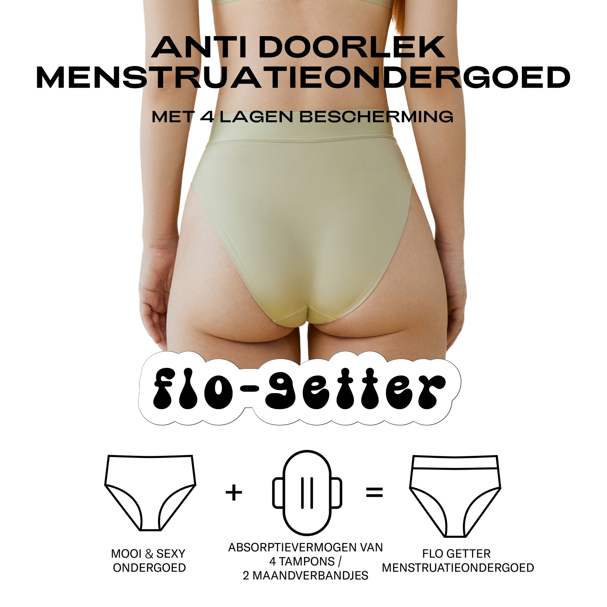 Flo Getter absorbs an equal amount of up to 4 tampons / 2 pads and is perfect for lighter days. Engineered with three layers of leak-proof, moisture-wicking, and anti-odour patented Silverclear© technology.