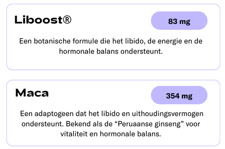 - Maca, Ginseng en Liboost® voor extra verlangen