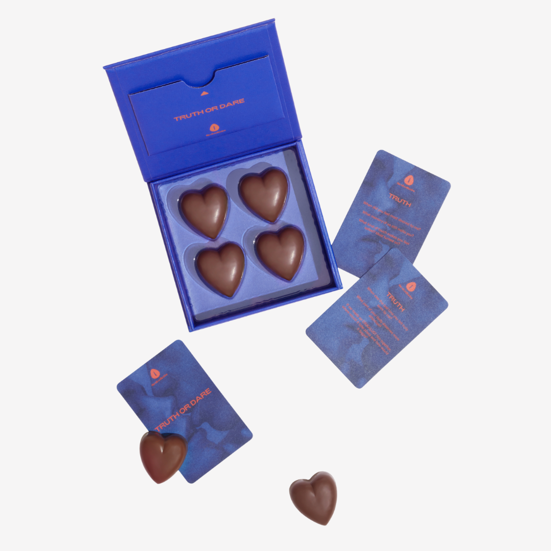 Every box of Date Night Chocolate comes with 12 surprise Truth Or Dare challenges in every box, helping you connect and enhance the spark.