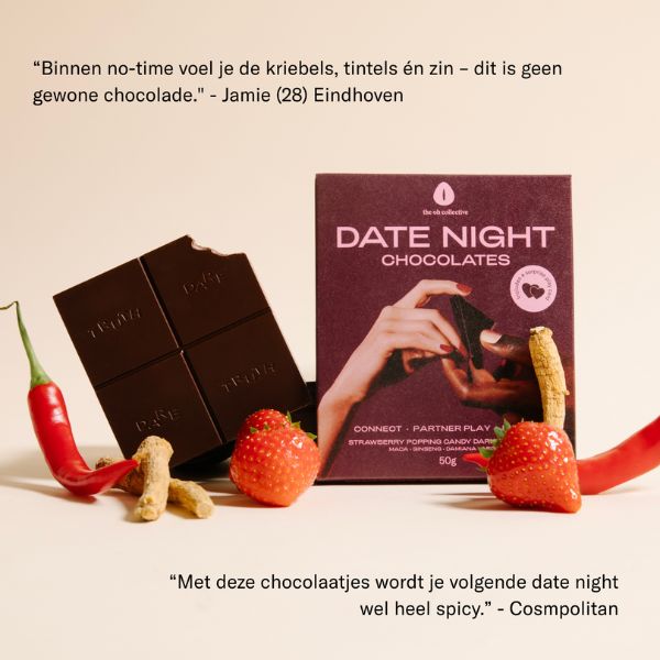 The ingredients boost energy and desire. Share a chocolate with your partner, wait 20–30 minutes, and play the Truth or Dare challenges. Want to intensify the feeling? Take a second portion after 30 minutes. Otherwise, save the rest for your next date night.